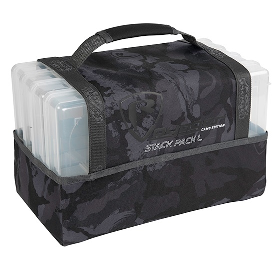 Fox Rage Camo Stack Pack este o geanta de spinning confectionata din polyester si este echipata cu patru cutii (28x18x18cm) din polipropilena, special fabricate pentru depozitarea si transportul nalucilor sau a accesoriilor de spinning. Fiecare cutie este impartita in compartimente fixe cu dimensiuni diferite, putand fi modificate cu ajutorul separatoarelor interne detasabile.