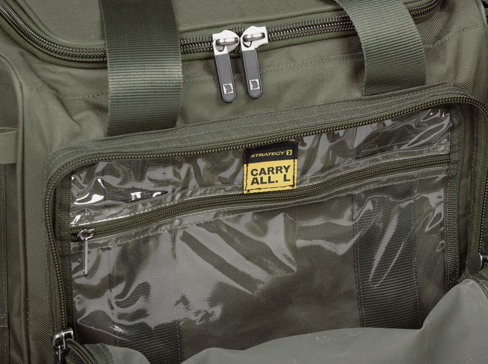 Este o geanta universala de tip "carryall" confectionata din poliester rezistent. Este conceputa pentru depozitarea accesoriilor de pescuit, a hainelor, cutiilor de momeala, etc. Compartimentul central se inchide etans cu autorul unui fermoar dublu. Geanta dispune de doua compartimente laterale si unul in partea din fata. De asemenea, dispune de curea de umar reglabila plus manere cu protectie, pentru transport facil.