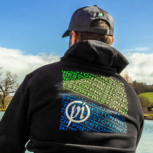 Dispune de o ajustare cu cordon de tragere gros pentru gluga si de talie, mansete elastice si de un buzunar frontal tip marsupiu. Hanoracul are in zona pieptului un imprimeu cauciucat soft touch cu logo-ul Preston, respectiv imprimeu cauciucat de dimensiuni mari pe spate, finisat in culori verde-albastru.