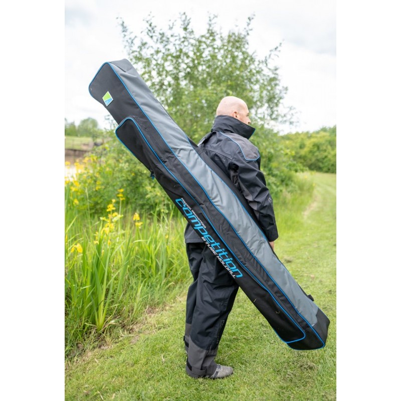 Preston Competition 6 Tube Holdall este o husa de dimensiuni medii compacta, potrivita atat pentru undite, cat si pentru lansete, ce gazduieste 6 tuburi de lungime completa care sunt tinute in pozitie de curele reglabile cu Velcro, mentinandu-le in siguranta. Dispune de un buzunar extern, ideal pentru o umbrela, manerul minciogului sau picheti. Tesatura este realizata din polyester durabil si rezistent atat la uzura, cat si la murdarie. Baza husei este acoperita cu un strat cauciucat impermeabil, ce impiedica patrunderea apei sau a murdariei la interior. Husa se inchide/deschide cu cate un fermoar dublu Heavy Duty de 10mm rezistent la manipulari repetate. De fiecare cheita a fermoarului este atasat cate un manson cauciucat ce confera o priza ferma si ajuta la inchiderea/deschiderea usoara a acestuia. Cureaua de umar este captusita cu material buretat pentru protectia umarului, iar manerul de transport este captusit cu neopren ce nu raneste pielea palmei si asigura un confort ridicat in timpul utilizarii.