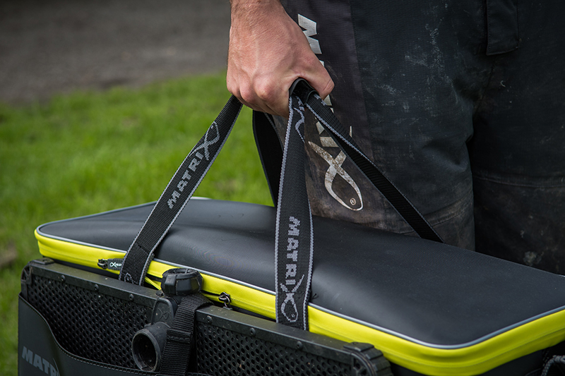 Horizon X EVA Multi Net Bag Small este o husa compacta fabricata integral din material EVA compozit, complet impermeabil si foarte rezistent la uzura, special conceputa pentru depozitarea minciogului sau a juvelnicului. Cusaturile etanse sudate termic sporesc rezistenta si durabilitatea gentii, impiedicand scurgerea accidentala a continutului si raspandirea mirosurilor neplacute (daca depozitati plasa de minciog uda). Husa se curata usor de murdarie si permite asezarea acesteia pe suprafete umede. Cureaua de umar reglabila si detasabila (prinderea clemelor de plastic este de tip Clip On) este captusita cu material buretat in zona centrala, pentru a evita ranirea umarului in timpul utilizarii. Compartimentul principal poate sustine fara probleme un juvelnic sau un cap de minciog. In plus, in partea din fata este pozitionat un buzunar special (63x6x40cm) pentru depozitarea unei tavi laterale sau a unui cap de minciog. Inchiderea compartimentului principal este ermetica, datorita fermoarului cu dublu sens invelit in material PU impermeabil. Manerele de transport din polyester pot fi prinse impreuna cu o banda de neopren (sistemul de prindere este cu banda velcro) moale si placut la atingere, ce nu raneste pielea palmei si asigura un confort ridicat in timpul utilizarii chiar daca geanta este complet incarcata si, prin urmare, grea.