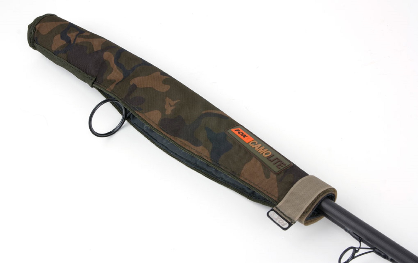 Husa de la FOX, confectionata din poliester 500D, rezistent si durabil, destinata protectiei extremitatilor lansetelor. Dispune de capat solid pentru a proteja capetele lansetei si are model unic Fox Camo. Capatul de 8 cm este captusit si ranforsat. Cureaua de fixare este prevazuta cu banda velcro ce se potriveste pe inelul de plecare. Este varianta extra-lunga pentru a se potrivi cu cele mai multe variante de pozitionare a inelului de plecare.