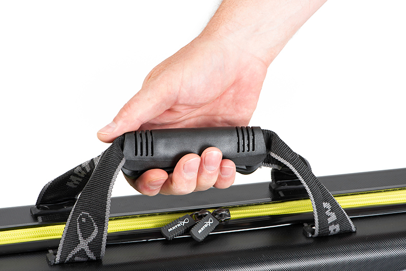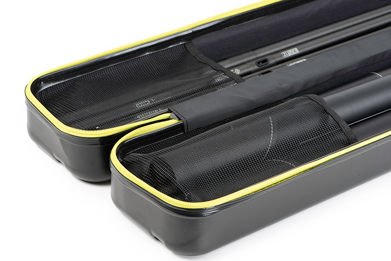 Prezinta un compartiment principal impartit in doua, prima jumatate ideala pentru kit-urile de rubesiene scurte, si cea de a doua pentru kit-urile lungi de maxim 195cm. Acestea vor fi fixate cu ajutorul benzilor elastice si a materialului de plasa prevazut in partea inferioara a husei. Fermoarul cu care a fost echipata husa a fost testat intensiv, pentru ca acesta sa aiba o rezistenta impresionanta la utilizari repetate. Matrix Duralite Top Kit Case reprezinta un articol indispensabil pentru o partida de pescuit de succes, dat fiind faptul ca ajuta la protejarea kit-urilor de rubesiene in timpul transportului.