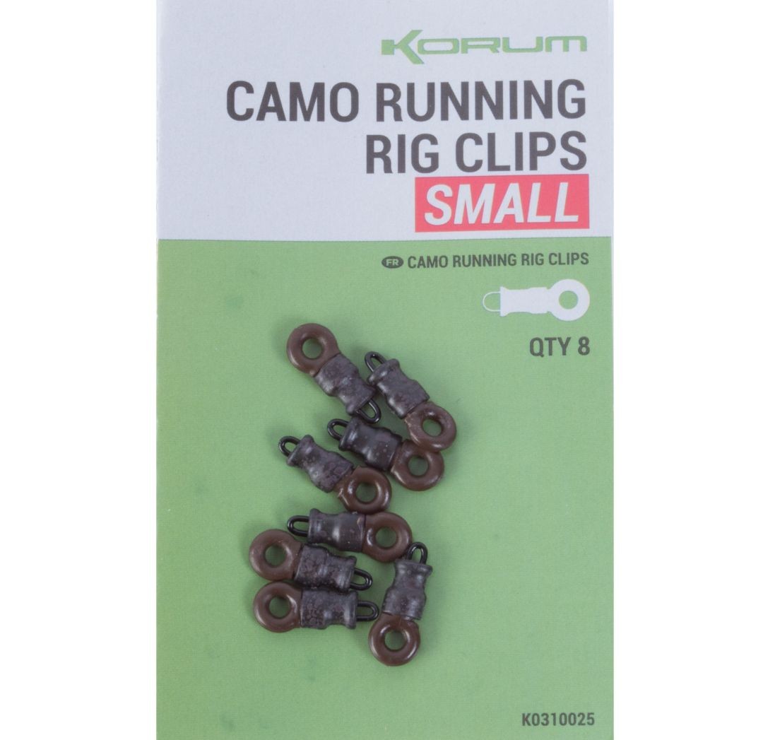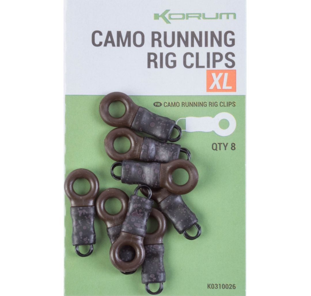 Korum Camo Running Rig Clips este un inel de atasare/blocare a plumbului pierdut folosit pe monturile culisante. Greutatea este atasata in partea inferioara, iar linia principala trece prin inelul de plastic de dimensiuni mai mari ce asigura o culisare optima, fara potentiale blocari. Intreg ansamblul este securizat de mansoul din cauciuc cu un camuflaj excelent. Fiecare plic contine 8 astfel de inele.