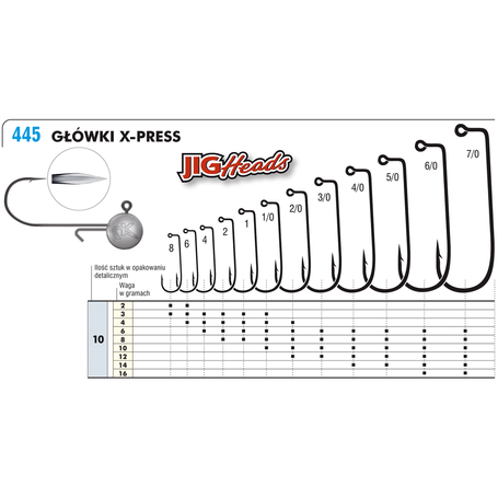 Capetele jig X-Press sunt realizate pe cârlige Kamatsu de cea mai înaltă calitate. Un proces special, dublu de forjare a lamei va agăța cu ușurință orice pește. Naluca este ținută pe loc pe o sârmă profilată iar jigul poate fi folosit și pentru a monta o nalucă îngustă și subțire, fără teama de a rupe partea din față. Aceste capete jig au o calitate și o claritate fără compromisuri de care nu veți dori să vă despărțiți de la prima partida de pescuit.