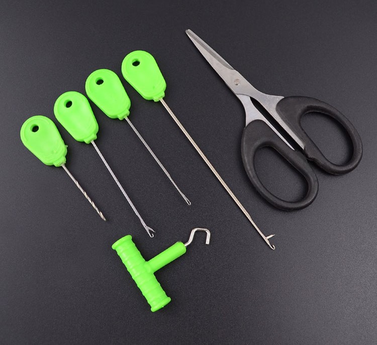 Este un kit complet pentru pescarii de crap. Setul contine: 1 x croseta Stringer Needle, 1 x croseta Boilie Needle, 1 x croseta Splicing Needle, 1 x burghiu Boilie Drill, 1 x foarfeca + 1 x dispozitiv Knot Puller (util pentru strangerea nodurilor).