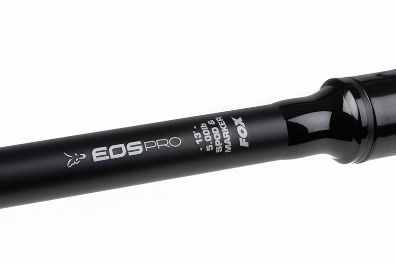Lanseta Eos Pro Spod/Marker este o lanseta special conceputa pentru nadirea cu spomburi si sondarea cu marker-ul, ce inglobeaza cele mai avansate tehnologii de fabricatie patentate de firma Fox. Blankul cu profil slim este fabricat din fibre de carbon cu rasini de cea mai buna calitate, intr-o cantitate mica, pentru a oferi lansetei o actiune rapida, cu o greutate scazuta. Aceasta caracteristica creste rata de recuperare, care la randul sau ajuta la eliminarea oscilatiei in timpul lanseurilor, fiind posibile atingerea unor distante precise. Lanseta este echipata cu 6 inele SLIK Air Guides (fara pastile ceramice), mandrina de 18mm si maner conic la capat finisat cu material EVA pe toata lungimea ce faciliteaza o priza ferma in timpul lanseului (mana nu aluneca chiar daca este uda). Inelul de varf antitangle (anti-frap tip guide) impiedica incurcarea accidentala a liniei de pescuit, iar finisajul negru mat discret ii confera lansetei un aspect elegant.