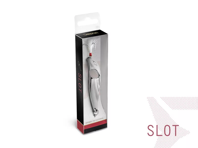 Lingura oscilanta Delphin SLOT reprezinta o naluca ideala pentru pestii rapitori de talie mare cum ar fi stiuca, salaul, avatul sau somnul. Este conceputa pentru a fi folosita in special in ape cu adancimi mari si se scufunda rapid datorita greutatii, formei dar si a orificiului special aflat in mijlocul corpului nalucii, corp care este fabricat dintr-un aliaj special de zinc. Lingura oscilanta este echipata cu tripla solida de calitate cu varfurile extrem de ascutite datorita tehnologiei Cutting Point care asigura o penetrare mult mai usoara a gurii pestilor rapitori.