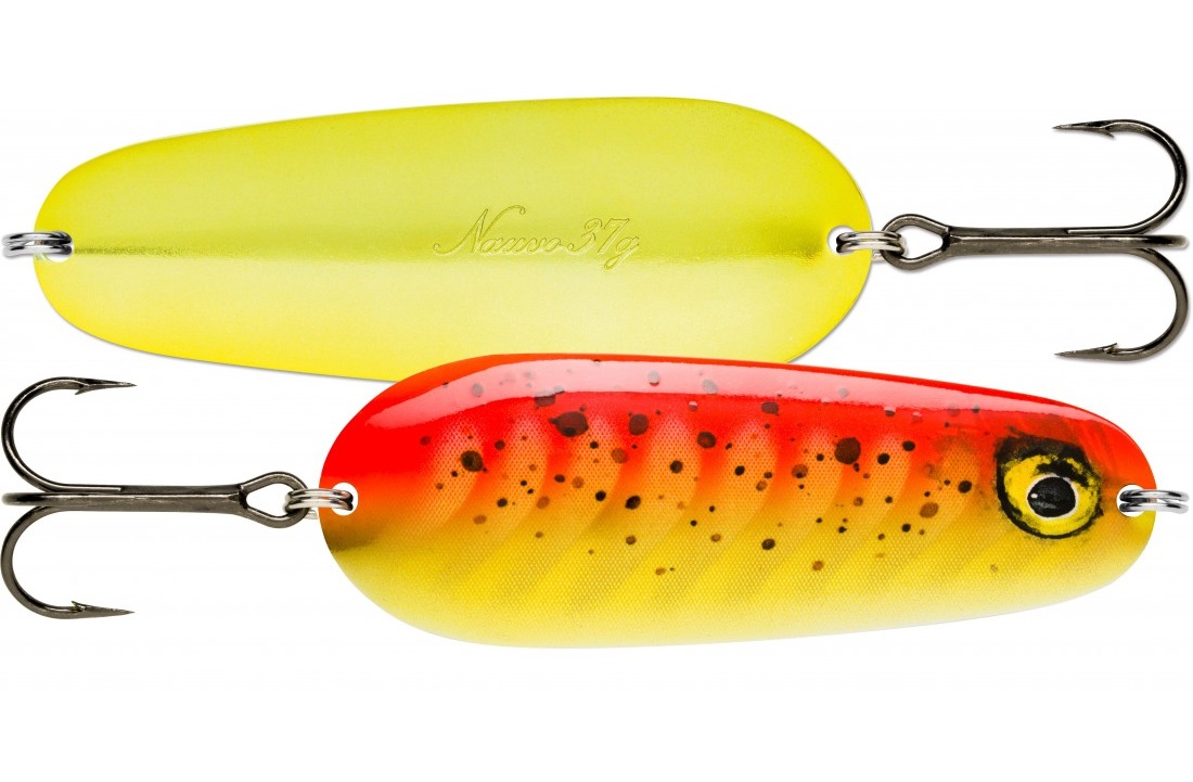 Nauvo este una dintre putinele oscilante pur-sange creatie a producatorului finlandez. La recuperare constanta, lenta, are o evolutie in unghiuri largi si reproduce perfect comportamentul unui pestisor in agoni. Adevarata dinamica a nalucii este conferita de viteza mare de recuperare, cu stopari bruste care genereaza o evolutie eratica, imposibil sa treaca neobservata.