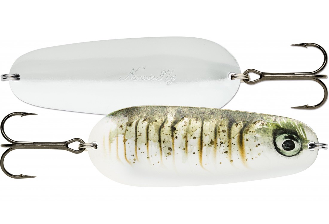 Nauvo este una dintre putinele oscilante pur-sange creatie a producatorului finlandez. La recuperare constanta, lenta, are o evolutie in unghiuri largi si reproduce perfect comportamentul unui pestisor in agoni. Adevarata dinamica a nalucii este conferita de viteza mare de recuperare, cu stopari bruste care genereaza o evolutie eratica, imposibil sa treaca neobservata.