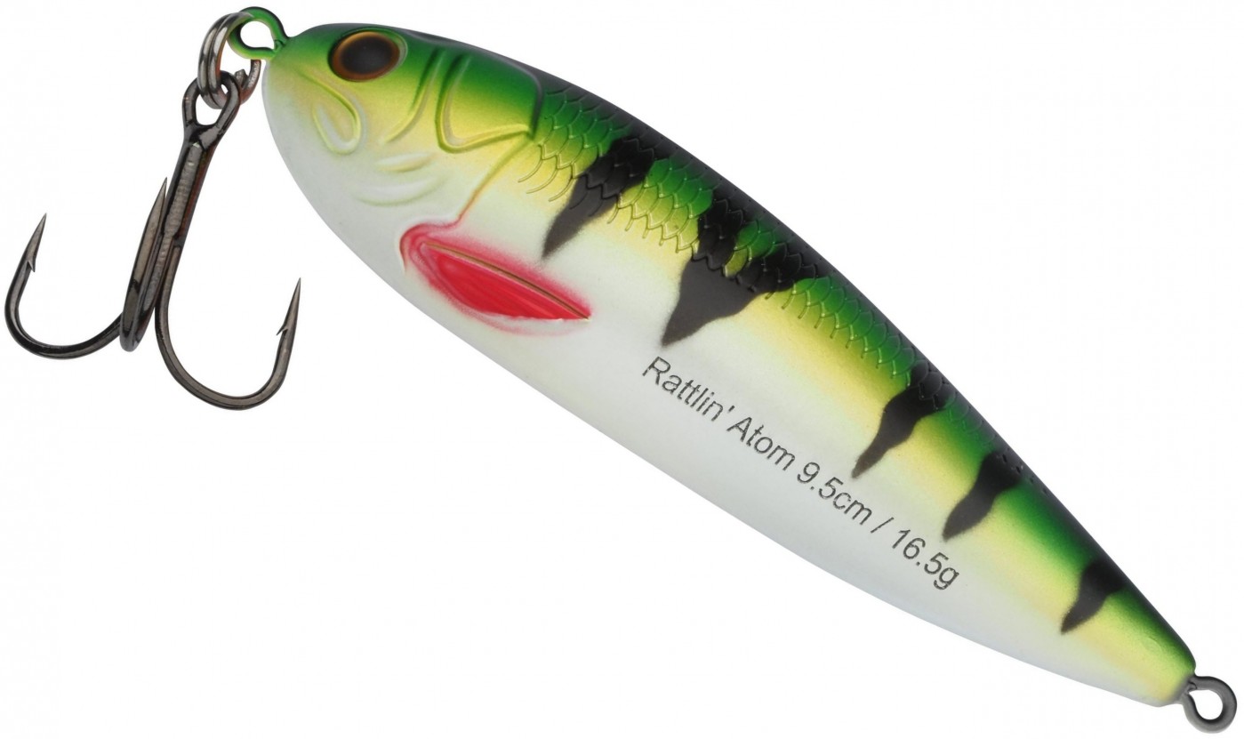 Rattlin' Atom este o naluca cu un design atragator si natural, ce dispune de o actiune ce va atrage imediat atentia pestilor rapitori. Corpul din plastic dur contine mai multe camere cu bile metalice zornaitoare (rattling), ce au ca rol producerea vibratilor de joasa frecventa. Forma aerodinamica faciliteaza lansarile la distante considerabile. Designul special previne rasucirea firului, chiar si in timpul recuperarilor rapide. Recuperarea acestei naluci este foarte usoara, orice tehnica fiind eficienta. Indiferent de recuperare miscarea nalucii va fi similara cu cea a unui peste prada ranit. Materialele de inalta calitate si vopseaua durabila ii confera o rezistenta sporita impotriva muscaturilor repetate.