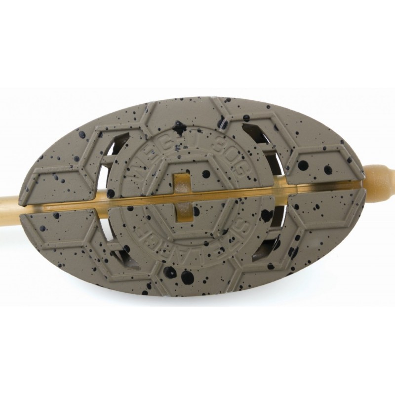 Perforatiile de pe lateralele momitorului asigura o dispersie foarte buna a nadei si peletelor introduse in momitor. Datorita constructiei ingenioase, acest tip de method feeder intotdeauna se va pozitiona corect pe substrat (cu partea superioara incarcata cu nada deasupra) si va oferi o prezentare impecabila a monturii. Culoarea de camuflaj in care este vopsit momitorul se integreaza perfect in decorul substratului fara a trezi suspiciunea pestilor.