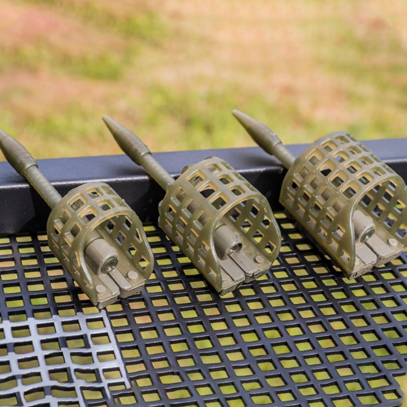 Datorita constructiei acestora putem fi siguri ca in orice situatie momitorul este in pozitia corecta pe substrat si este gata de pescuit. Plasa este confectionata din plastic la fel ca si la celelalte modele de momitoare tip cage, fapt ce ajuta ca peletele si particulele sa fie scoase din momitor indiferent de cat de tare sunt acestea presate.