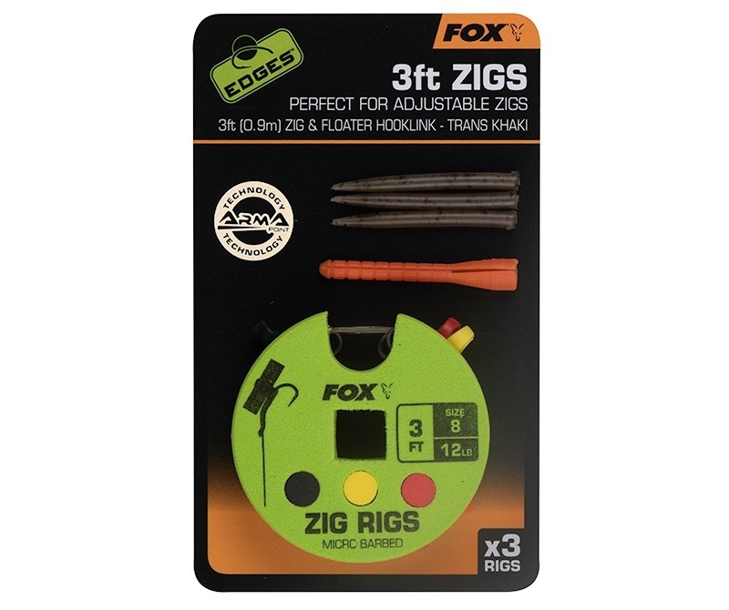 Montura zig rig se foloseste cu succes la prinderea pestilor atunci cand acestia se hranesc aproape de suprafata apei. La realizarea acestor monturi s-au folosit numai accesorii de inalta calitate, printre care si firul fluorocarbon Zig and Floater Hooklink 12lb (5.44kg). Producatorul recomanda folosirea monturilor alaturi de clipsul special pentru plumb Zig Rig Lead Clip, iar sfatul specialistilor FOX este sa incercam diferite culori, la diferite adancimi pentru a localiza crapii mai usor.