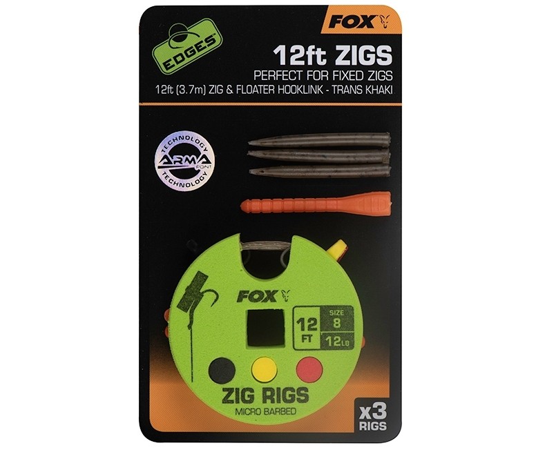 Montura zig rig se foloseste cu succes la prinderea pestilor atunci cand acestia se hranesc aproape de suprafata apei. La realizarea acestor monturi s-au folosit numai accesorii de inalta calitate, printre care si firul fluorocarbon Zig and Floater Hooklink 12lb (5.44kg). Producatorul recomanda folosirea monturilor alaturi de clipsul special pentru plumb Zig Rig Lead Clip, iar sfatul specialistilor FOX este sa incercam diferite culori, la diferite adancimi pentru a localiza crapii mai usor.