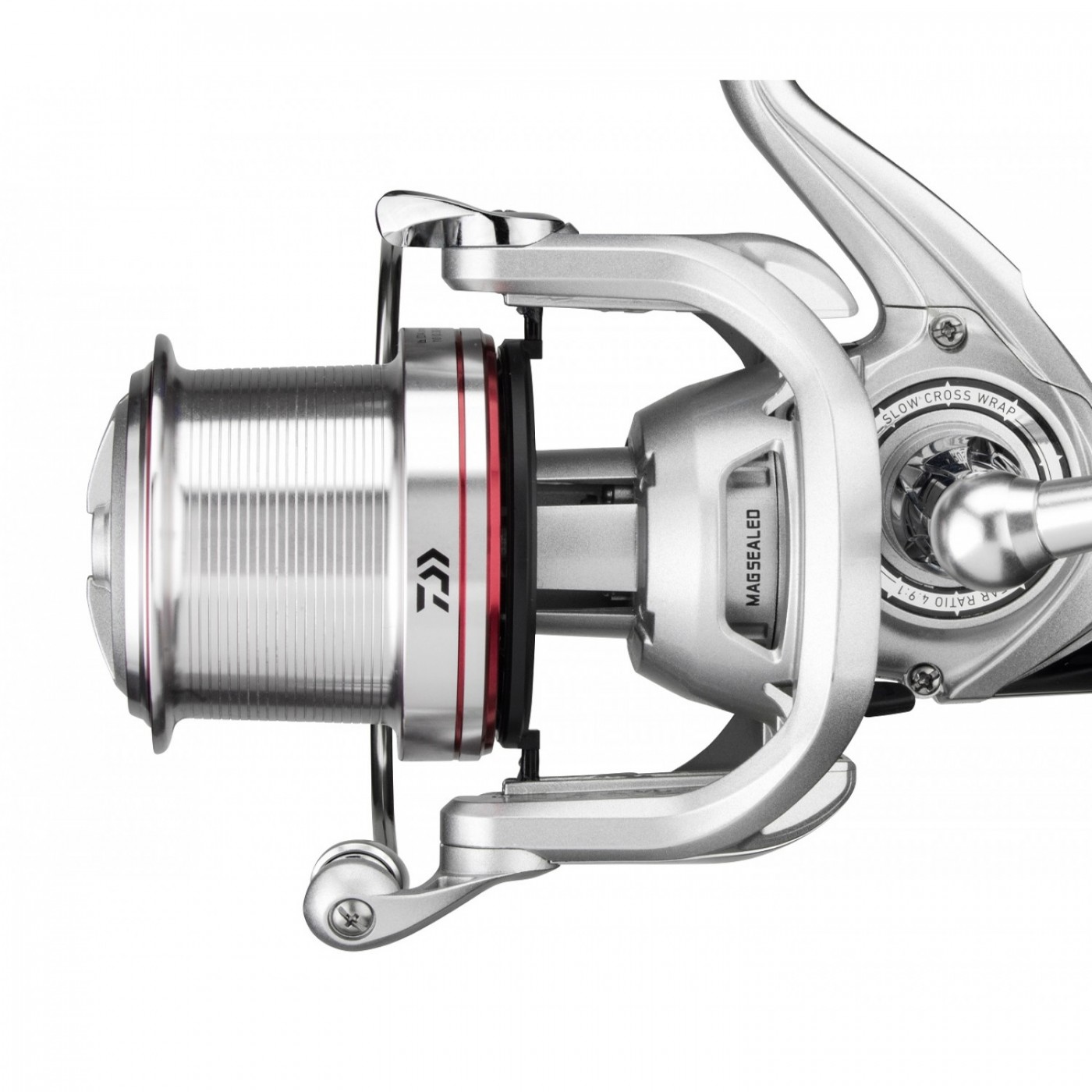 Daiwa Emblem 35 SCW 5000C QD este o mulineta de crap, echipata cu un tambur de 35mm, ce permite utilizarea fara probleme a firelor monofilament cu diametre mai groase. Mulineta este foarte versatila, putand fi utilizata atat pentru pescuitul de pe mal cat si la pescuitul din barca. Emblem 35SCW este livrata cu un de tip "Shallow" C (adancime mica) plus un tambur de rezerva adanc, de tip Long Distance. In plus, mulineta este echipata cu un sistem de oscilatie redusa "Slow Cross Wrap", ce permite asezarea perfecta a spirelor si culisarea acestora foarte lin.