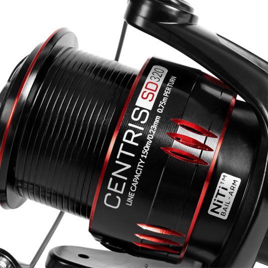 Mulineta Preston Centris SD vine livrata cu tambur de rezerva si doua manivele interschimbabile (standard si dubla), prevazute cu knob-uri ergonomice de tip Soft-Touch. Tamburii, atat cel principal, cat si cel de rezerva, prezinta un buton quick-release in zona fluturelui, permitand schimbarea rapida a acestuia. De asemenea, sunt echipati cu doua clips-uri metalice rotunde, permitandu-va sa accesati doua distante diferite. Gama contine trei marimi distincte, 320, 420 si 520, acoperind o plaja larga de necesitati in cadrul partidelor de pescuit stationar.