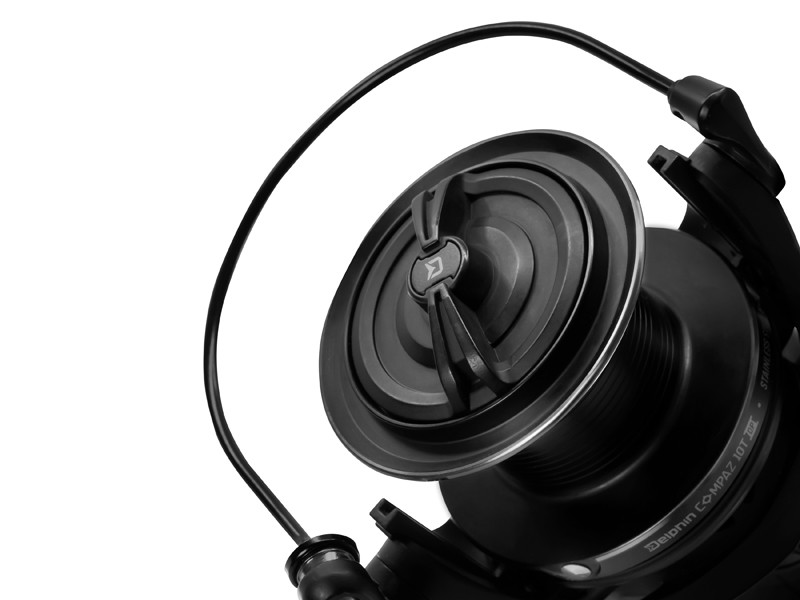 Delphin Compaz 10T este o mulineta de mare capacitate cu baitrunner, care este pregatita sa faca fata celor mai diverse provocari ale pescuitului la crap. Datorita celor 6 (5+1) rulmenti inox si arborelui, Compaz se remarca prin rezistenta la efecte externe, ceea ce reduce semnificativ posibilitatea uzurii premature. Aceste componente din inox contribuie semnificativ la mersul continuu si lin al mulinetei.