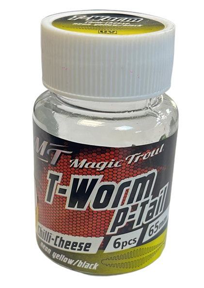 Naluca Magic Trout T-Worm P-Tail Chilli-Cheese, Neon Yellow Black, 65mm, 6buc