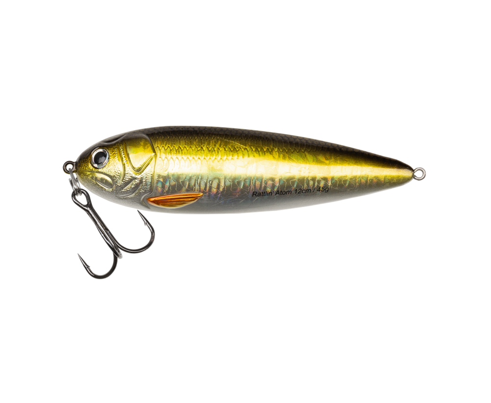 Rattlin' Atom este o naluca cu un design atragator si natural, ce dispune de o actiune ce va atrage imediat atentia pestilor rapitori. Corpul din plastic dur contine mai multe camere cu bile metalice zornaitoare (rattling), ce au ca rol producerea vibratilor de joasa frecventa, iar forma aerodinamica faciliteaza si mai mult lansarile la distante considerabile. Designul special previne rasucirea firului, chiar si in timpul recuperarilor rapide. Recuperarea acestei naluci este foarte usoara, orice tehnica de recuperare fiind eficienta, miscarea nalucii va fi similara cu cea a unui peste prada ranit. Materialele de inalta calitate si vopseaua durabila, ii confera o rezistenta sporita impotriva muscaturilor repetate.