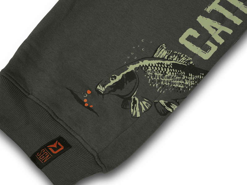 Seria Catch Me If You Can, cu grafica inspirata din lumea pescuitului la crap, este o piesa de rezistenta nu doar pentru garderoba unui pescar. Imprimeul, care se extinde pe toata latura piciorului stang, intr-un stil ce imita un desen, surprinde un crap in momentul in care se apropie de cateva boiliesuri.