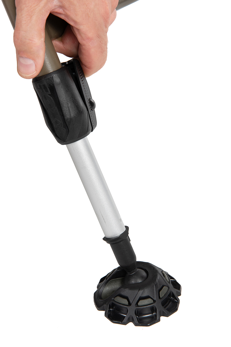 - 6 picioare ajustabile cu tălpi pivotante pentru noroi: Oferă stabilitate maximă pe orice tip de teren. Picioarele se pot regla individual pentru a compensa denivelările, iar tălpile pivotante asigură o aderență excelentă chiar și pe suprafețe umede sau noroioase.
