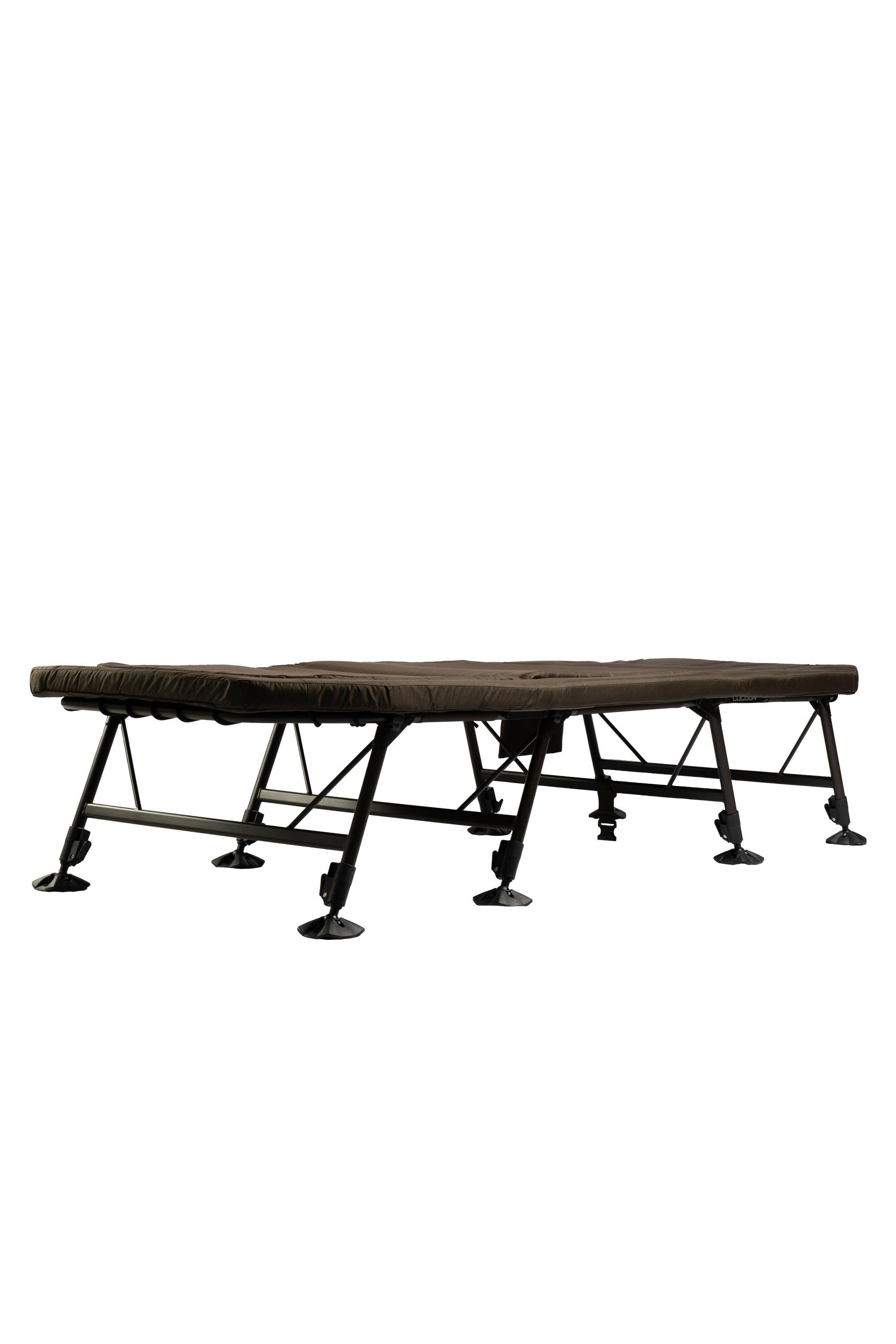 JRC Cocoon II Flatbed este un pat de pescuit cu dimensiuni generoase, special conceput pentru a oferi un confort superior și stabilitate optimă în orice condiții de teren. Dotat cu o saltea groasă și căptușită, acest model asigură o izolație termică excelentă, fiind ideal pentru sesiunile lungi de pescuit sau camping.