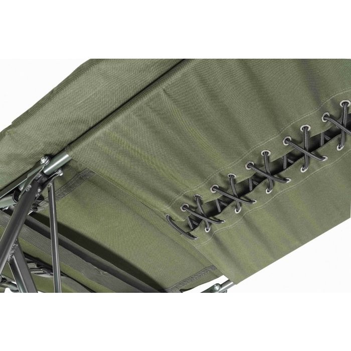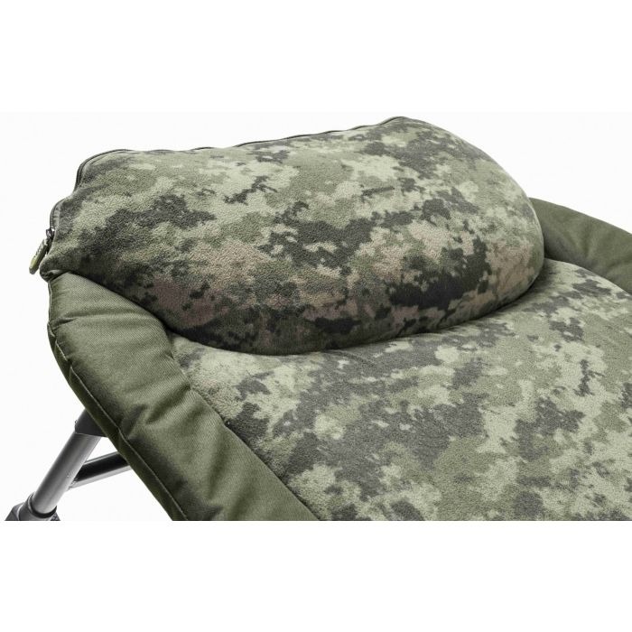 Construit pe un cadru ușor din aluminiu cu o capacitate de 160 kg, patul este atât rezistent, cât și portabil (doar 9.54 kg). Sistemul de tensionare central și curelele laterale permit reglarea fermității și a nivelului de inclinare pentru un confort personalizat. Designul său CamoCODE digital îl face discret în mediu, iar perna cu fleece din zona capului completează experiența de relaxare.