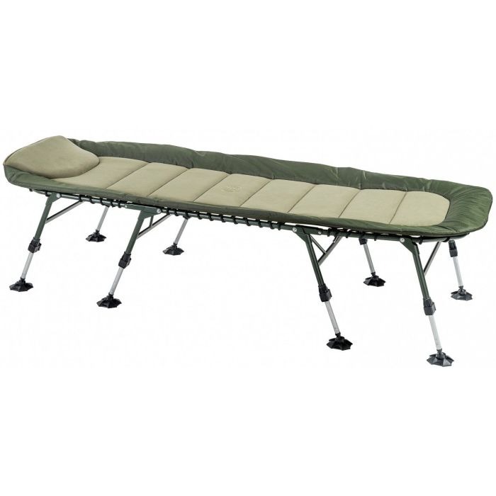 Patul generos, cu 8 picioare reglabile și capacitate de 160kg, pentru odihnă stabilă și spațioasă pe mal.