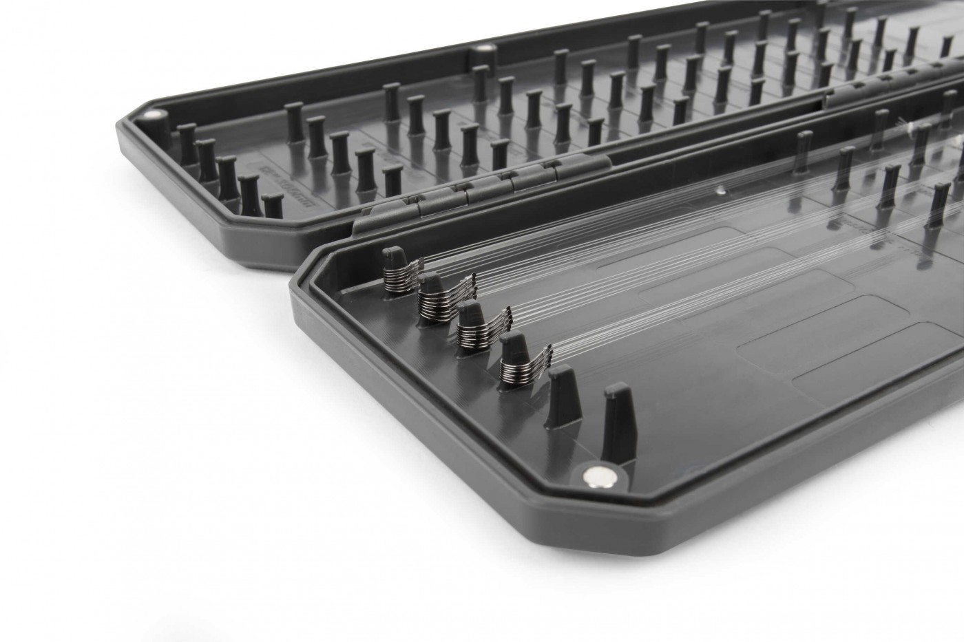 Specialistii Preston au proiectat o unitate de stocare rigida, ce poate stoca o multitudine de forfacuri pentru feeder/match. Penarul este fabricat din plastic ABS durabil si rigid, rezistent la socuri mecanice si la actiunea coroziva a apei. Penarul dispune la exterior de finisaj special (se curata foarte usor prin simpla spalare cu apa), ce garanteaza o aderenta excelenta chiar si cand aveti mana umeda. Capacul se inchide etans cu ajutorul celor doua cleme si magnetilor aditionali incastrati in lateralele penarului. Acest penar universal este ideal pentru depozitarea a numeroase riguri cu lungimi cuprinse intre 10cm si 30cm. Capacitatea este enorma, deoarece penarul este echipat cu 10 pini fixi ce pot sustine fiecare cate 10 riguri.