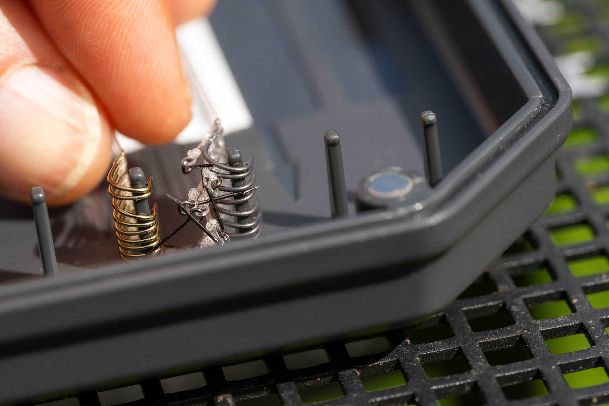 Interiorul penarului este echipat cu o multitudine de pini, care permit acomodarea monturilor de diverse lungimi. Aceasta functionalitate face ca Preston Absolute Hooklength Box sa fie ideal pentru tehnicile moderne de pescuit stationar, unde monturile trebuie sa fie organizate si accesibile rapid. Pinii sunt ajustabili, oferind flexibilitate in organizarea monturilor si asigurand ca fiecare montura este bine fixata si usor de accesat.