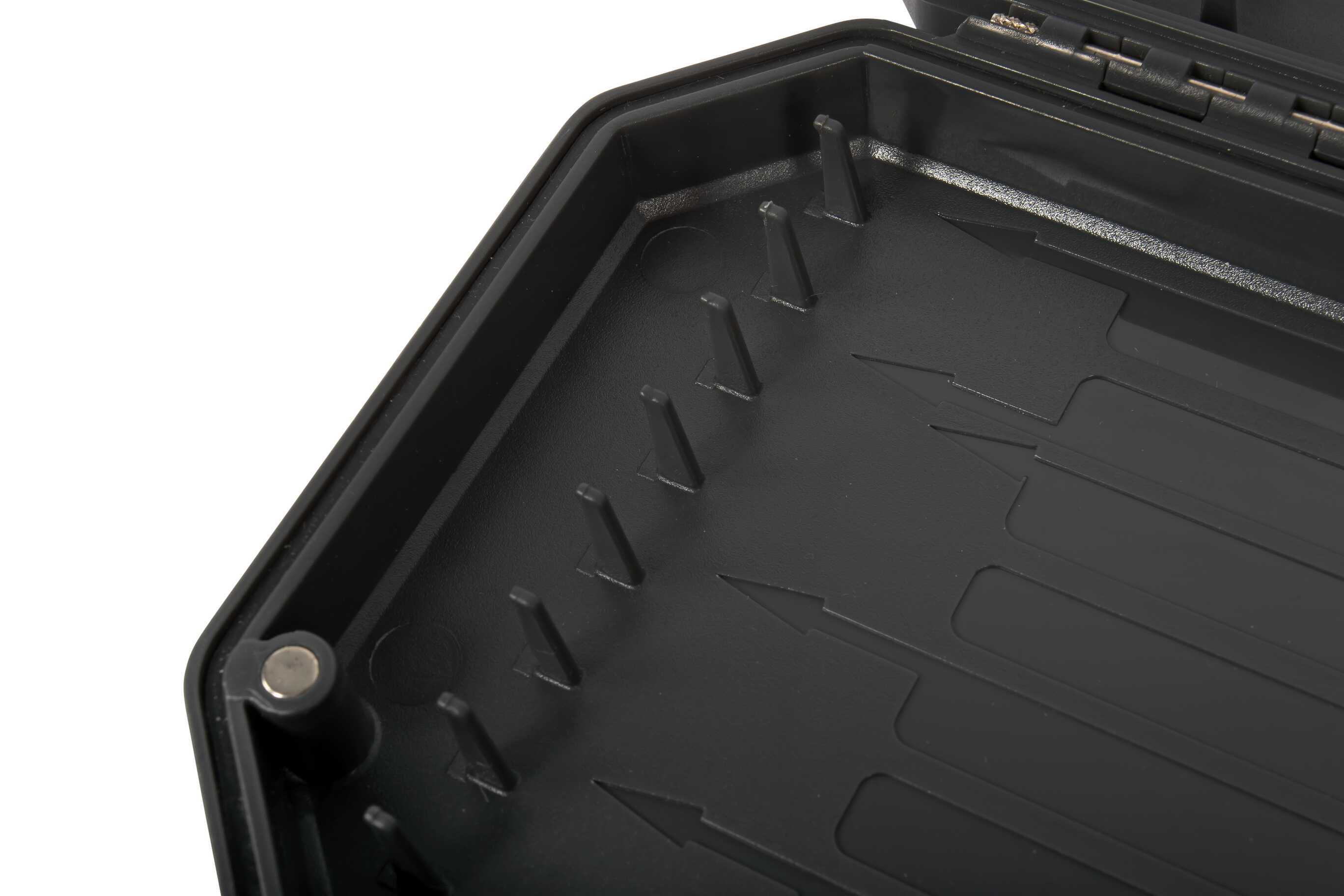 Carcasa ranforsata a penarului este construita pentru a rezista la utilizari intense si conditii meteorologice variate. Unul dintre cele mai notabile aspecte ale Preston Absolute Hooklength Box este sistemul de inchidere pe baza de magneti. Acest sistem ingenios nu doar ca asigura o inchidere sigura, dar creeaza si o bariera izolatoare eficienta, prevenind patrunderea apei in interiorul penarului. Aceasta caracteristica esentiala protejeaza monturile de umiditate si contribuie la mentinerea echipamentului in stare optima.