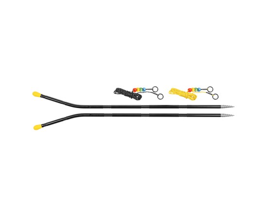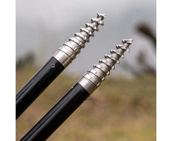 Vârfurile din oțel inoxidabil sunt proiectate pentru a se înșuruba în siguranță chiar și în cele mai dificile terenuri. Bara T din oțel inoxidabil cu șuruburi, amplasată în partea de sus a fiecărui baston, oferă pârghie suplimentară la abordarea terenului ferm. Canelurile prelucrate cu precizie de-a lungul stick-ului minimizează alunecarea firului în timpul utilizării.