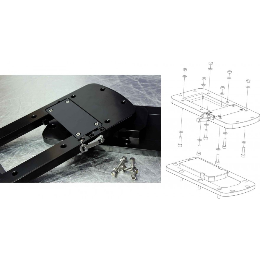 Baza pentru montarea rapida a motorului Rhino BLX 65BMR. O parte este înșurubată la barcă, cealaltă la motor, permite astfel asamblarea / dezasamblarea rapidă a motorului pe barcă. Are orificiu pentru lacat, protejeaza motorul impotriva furtului.