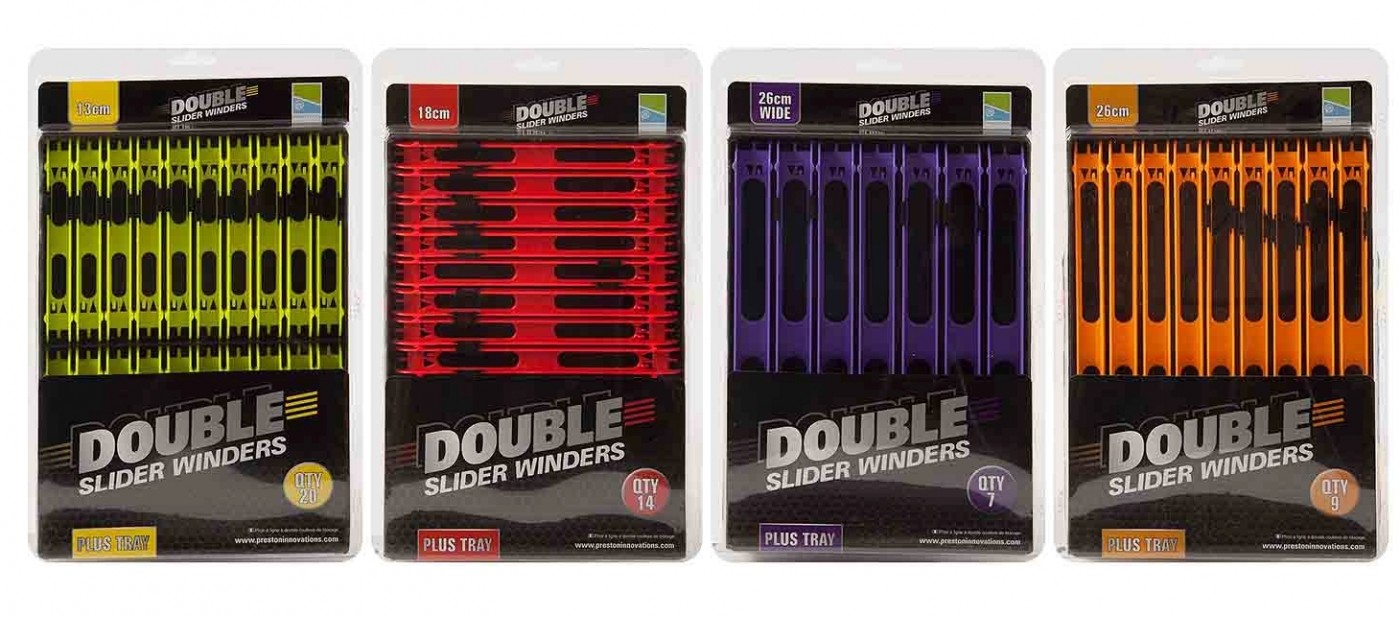 Noul model imbunatatit Double Slider Winders dispune acum de doua suporturi, astfel incat doua riguri pot fi stocate. Exista un slot pentru carlig si un pin de fixare, ceea ce inseamna ca rigurile pot fi legate si pot fi modificate ulterior, daca este nevoie, fara riscul de incurcare a firului. Este disponibil intr-o gama larga de marimi si culori deschise pentru o vizibilitate sporita.