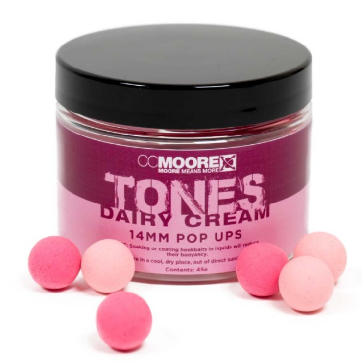 CC Moore Dairy Cream Tones Pop-Up este o momeala flotanta premium, creata pentru a oferi atractie maxima si prezentari eficiente in orice conditii de pescuit. Formula include proteine lactice, carbohidrati solubili si extracte naturale, combinate cu aroma distincta dulce-cremoasa Dairy Cream, foarte eficienta pentru crapi si alte specii mari.