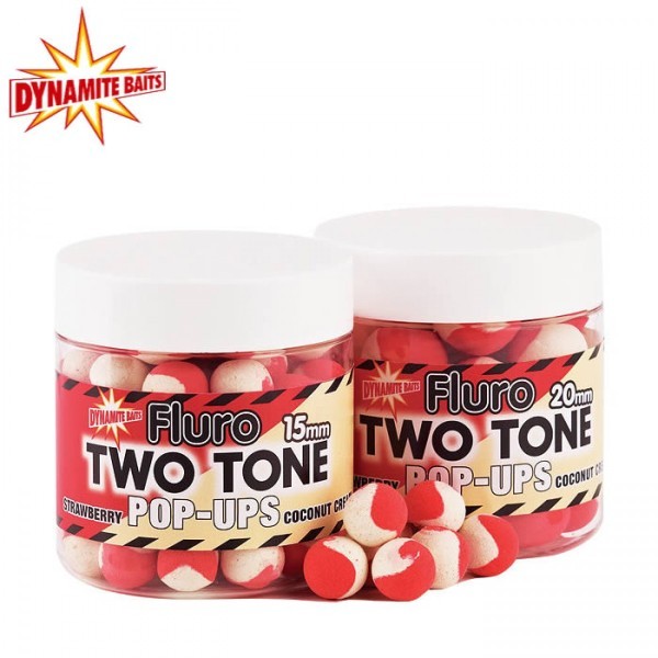 Ca o extensie a gamei Fluro, au fost create ulterior pop-upurile Dynamite Baits Two-Tone, tinandu-se cont si de faptul ca o combinatie de 2 arome si 2 culori creaza o atractivitate mai mare in jurul momelii de carlig.