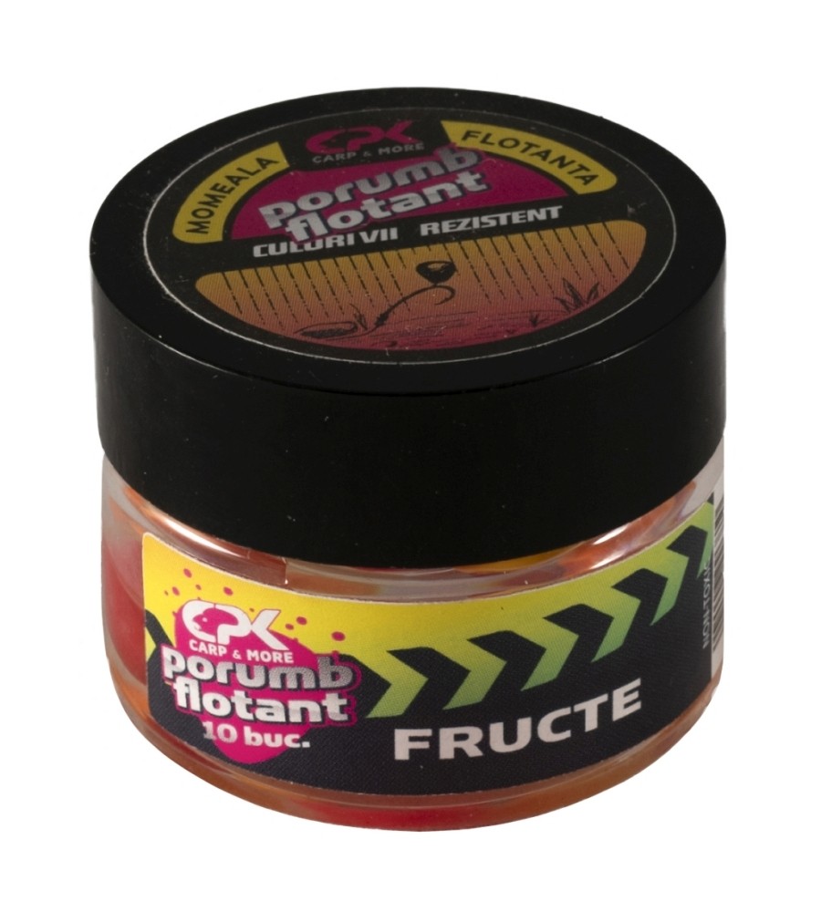 Gama CPK Porumb flotant in mai multe culori, personalizat cu diferite arome poate fi solutie buna pentru o partida reusita. Este recomandata aceasta alegere pentru perioadele calduroase, atunci cand pescuiti la crap si amur.