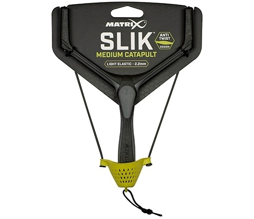 Slik Catapult este o prastie din gama producatorului Matrix recomandata pentru pescarii de stationar. Gama contine doua marimi, Medium si Large, echipate cu elastic in diferite diametre, pentru a putea nadi precis indiferent de situatie. Dupa cum sugereaza si numele, prastiile folosesc elasticul Matrix Slik, pentru durabilitate si performante deosebite. Slik ofera proprietati de intindere de neegalat (pana la 600% fata de elasticele clasice din latex) cu retragere ultra-rapida. Suprafata fina si neteda creeaza o frecare minima, ce garanteaza o performanta perfecta in orice conditii.
