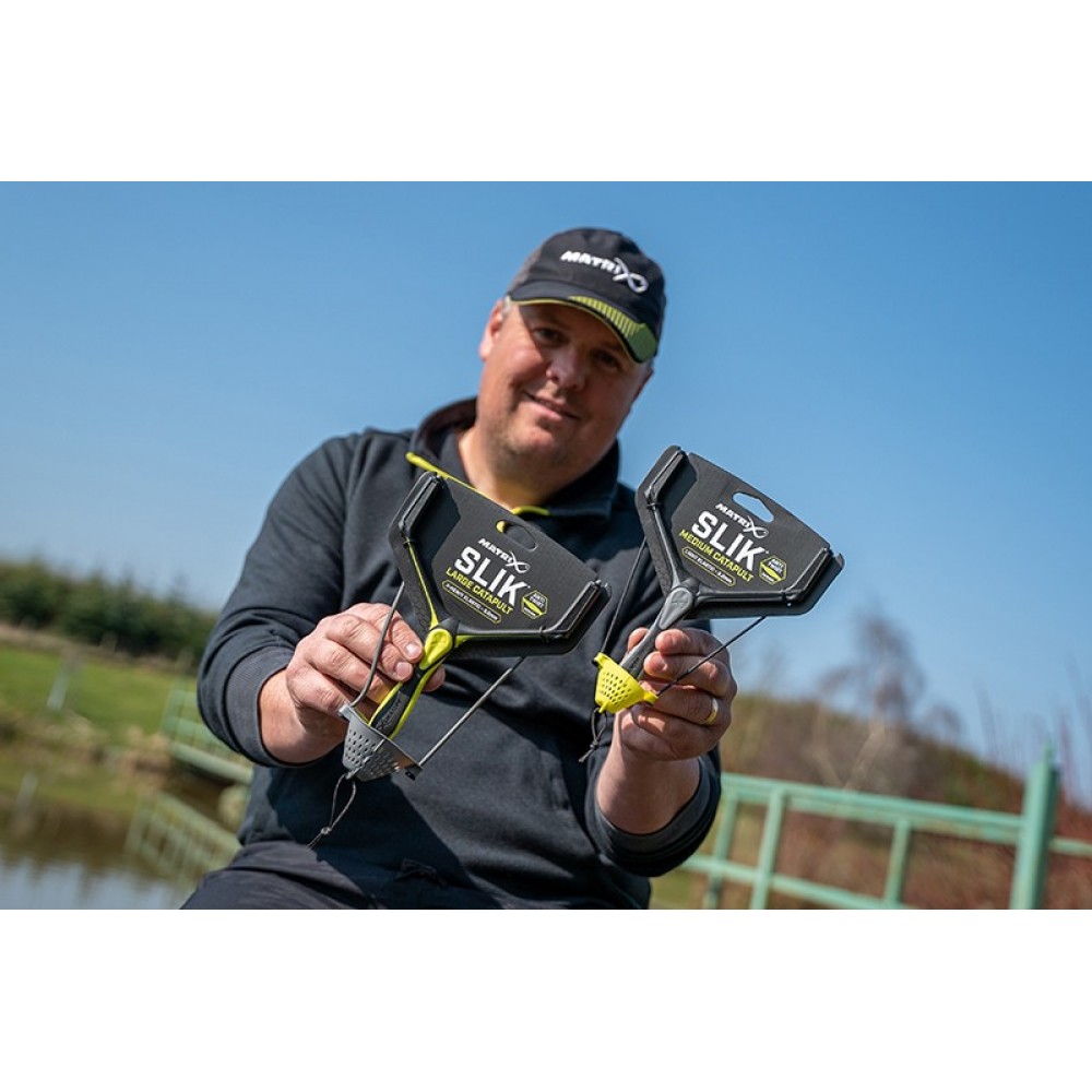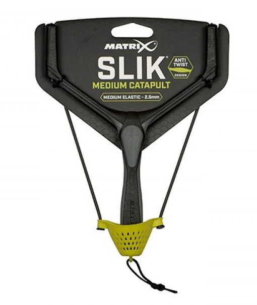 Slik Catapult este o prastie din gama producatorului Matrix recomandata pentru pescarii de stationar. Gama contine doua marimi, Medium si Large, echipate cu elastic in diferite diametre, pentru a putea nadi precis indiferent de situatie. Dupa cum sugereaza si numele, prastiile folosesc elasticul Matrix Slik, pentru durabilitate si performante deosebite. Slik ofera proprietati de intindere de neegalat (pana la 600% fata de elasticele clasice din latex) cu retragere ultra-rapida. Suprafata fina si neteda creeaza o frecare minima, ce garanteaza o performanta perfecta in orice conditii.