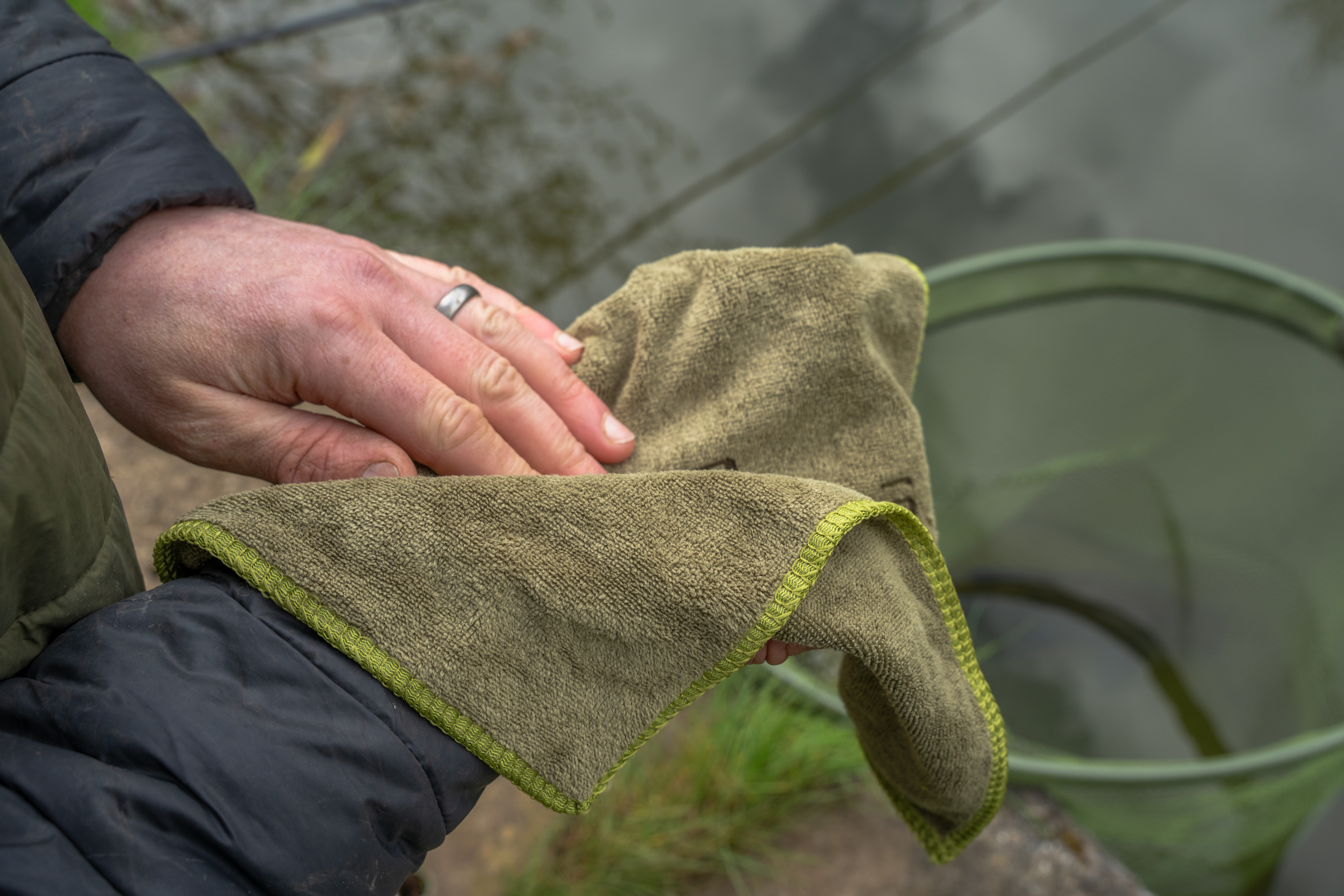 Korum Progress Microfibre Towel este un prosop pentru maini realizat 100% din poliester, oferind multiple avantaje. Materialul de inalta calitate il face foarte absorbant, putand retine de aproape trei ori mai multa apa decat un prosop obisnuit din bumbac. De asemenea, microfibra asigura o uscare rapida si il face usor de impaturit. Un alt element practic este bucla de agatare, care permite fixarea prosopului in copaci sau suporturi de pescuit, oferind acces facil si uscare rapida.
