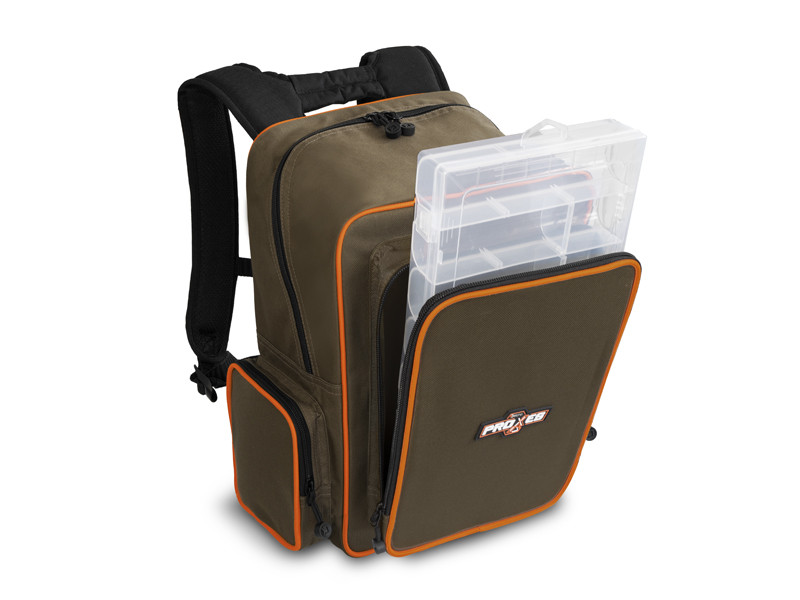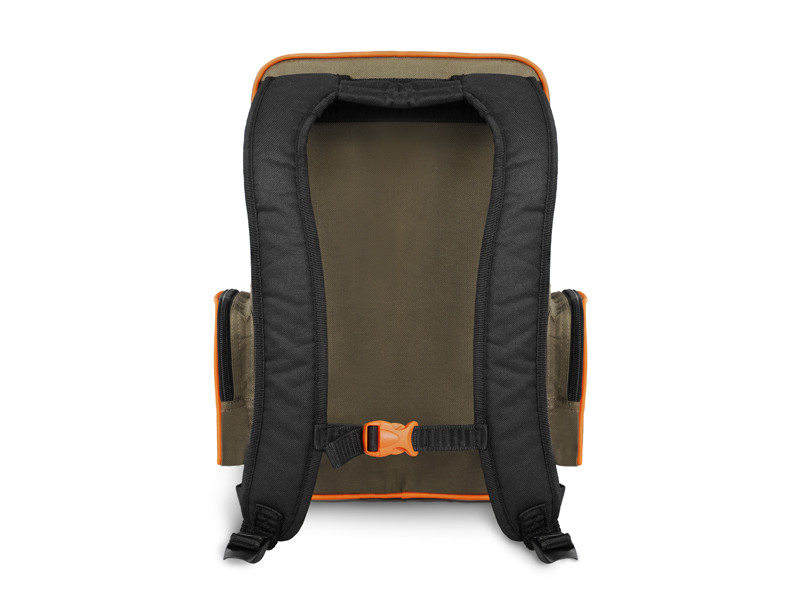 Rucsacul este conceput pentru a oferi un spațiu amplu de depozitare pentru cutii de momeli, accesorii sau orice alt echipament necesar pentru un pescuit de succes. Spațiul principal de depozitare poate fi accesat printr-un fermoar înclinat. De asemenea, are două buzunare cu fermoar pe laterale. În comparație cu rucsacurile convenționale dintr-o gamă de preț similară, acesta are un buzunar cu fermoar în partea din față care conține o cutie de plastic potrivită pentru momeli sau momitoare, respectiv coșulețe. Acest rucsac are un capac transparent, astfel încât veți vedea întotdeauna ce se află înăuntru.