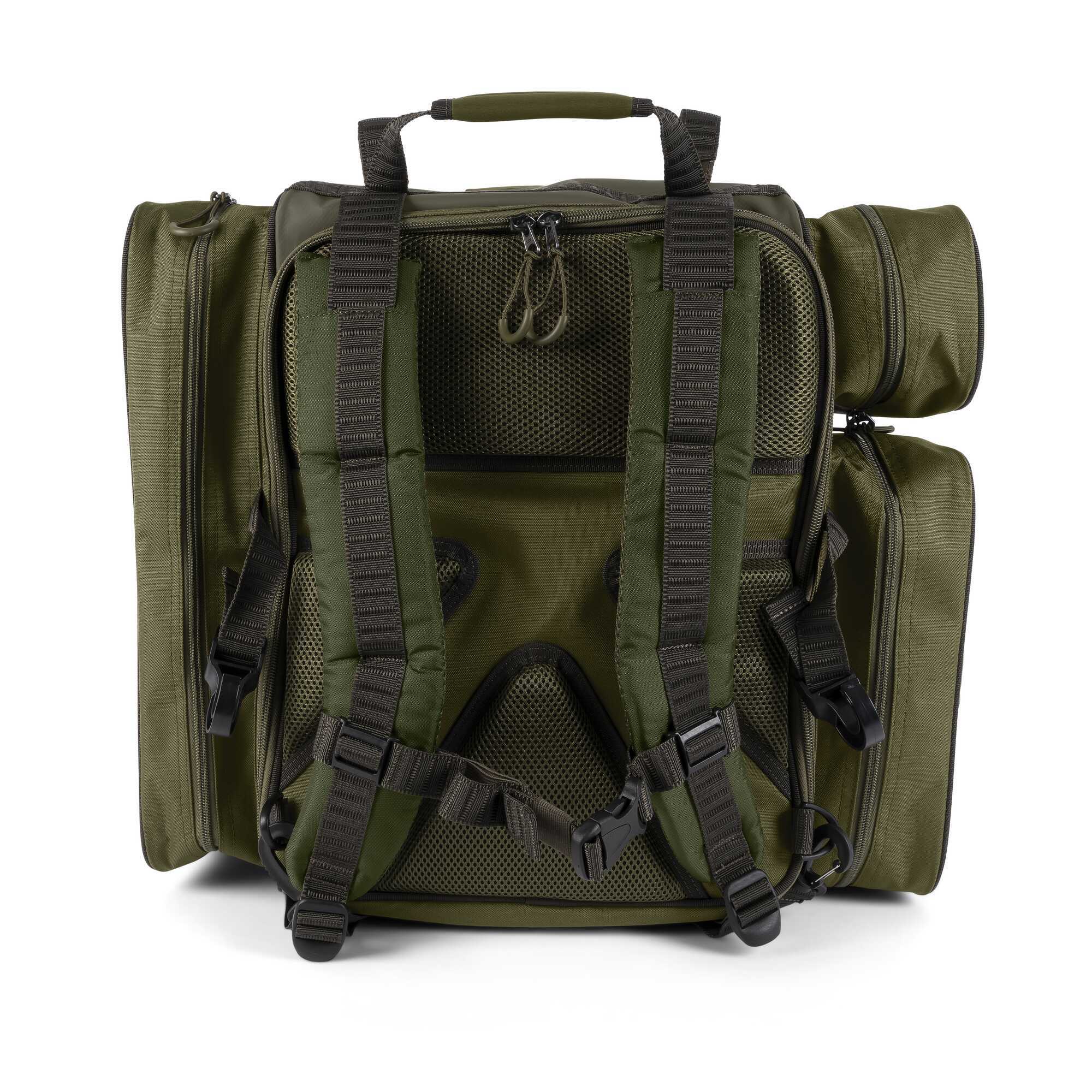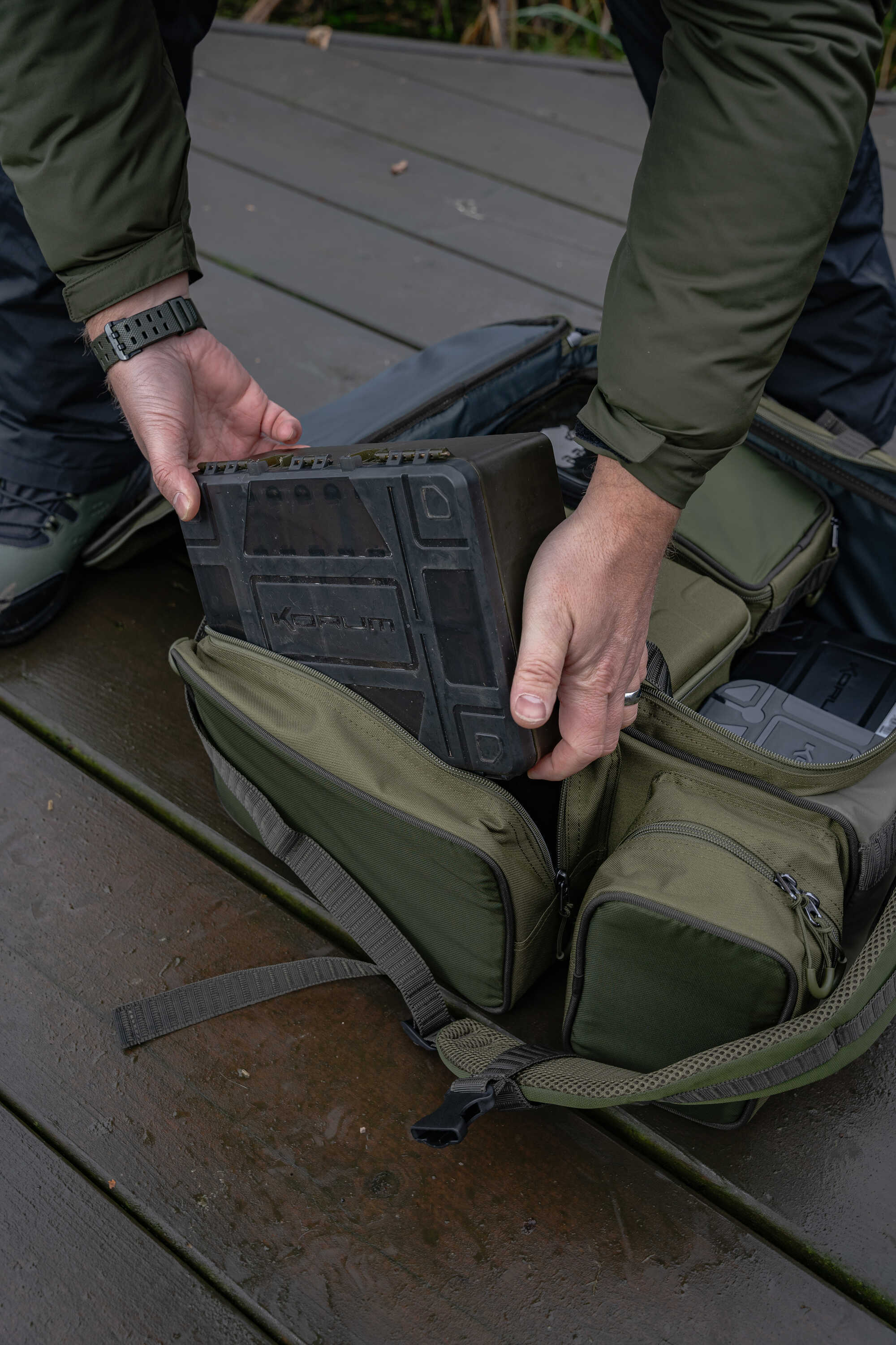 Rucsacul Korum Progress Ruckbag este o alegere ideala pentru pescarii care cauta o solutie de transport eficienta si rezistenta pentru echipamentul de pescuit. Dimensiunea special gandita a acestui rucsac este perfect adaptata pentru a gazdui seria populara Tackle Blox, alaturi de alte accesorii esentiale pentru pescuit. Designul sau inteligent include curele mai lungi in partea de sus pentru transportul capetelor de minciog si a pichetilor, asigurand o experienta de transport convenabila si fara efort.