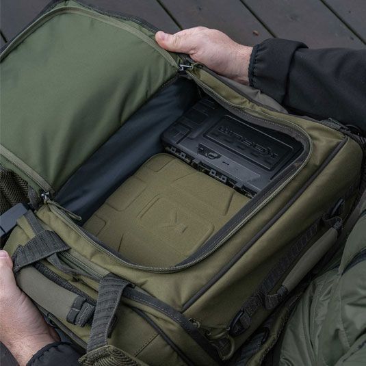 Din gama noua de bagajerie a celor de la Korum, Progress Roversack ofera o alternativa avantajoasa care deschide calea catre o experienta de pescuit fara efort. Deschiderea sa tip Ruckbag faciliteaza accesul la echipamentul de pescuit, astfel incat accesul sa fie cat mai usor. Cele doua suporturi laterale permit organizarea echipamentuli intr-un mod practic si accesibil, fixand eficient avertizorii echipati pe picheti. In plus, buzunarul superior este compatibil cu Tackle Blox, oferind posibilitatea de personalizare si organizare a echipamentului in functie de preferinte.