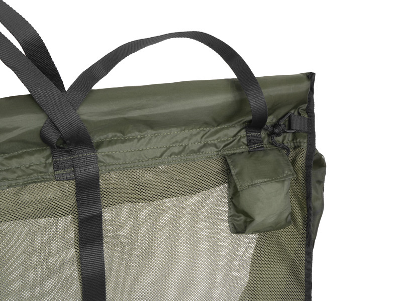 Curelele sacului sunt echipate cu plutitoare pe toată lungimea lor, permițând depozitarea sigură a capturii în apă, de exemplu în timpul pregătirii pentru fotografiere. Partea principală este confecționată din plasă fină, care este extrem de delicată cu peștii. Materialul utilizat permite scurgerea întregii ape în timpul ridicării și manipulării peștelui, permițând o cântărire precisă.