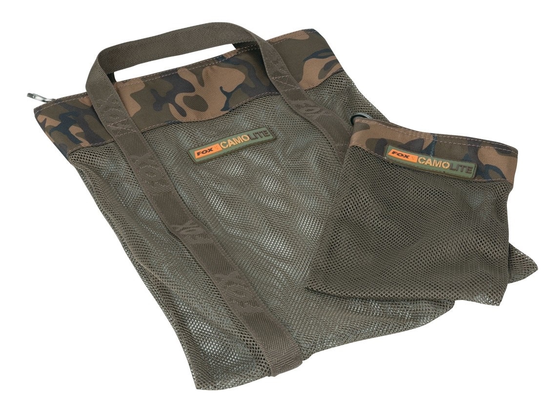 Fox Camolite Air Dry este un sac destinat pastrarii sau uscarii boiliesurilor, avand dimensiunile de 30cm x 38cm. Se livreaza impreuna cu un sac mai mic pentru pastrarea si uscarea momelilor de carlig.