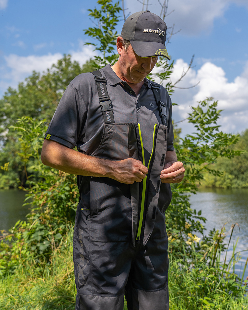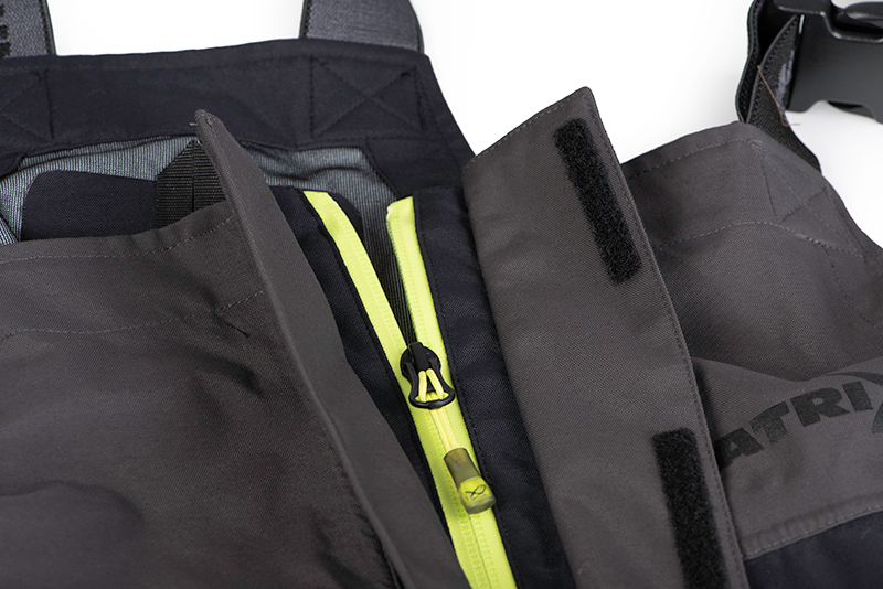 Matrix Tri-Layer Salopettes 25K Pro este o salopeta de calitate superioara cu trei straturi de tesatura (layere) ce asigura un confort termic ridicat necesar in zilele reci cu vant si ploi in sezoanele de primavara, vara si toamna. Geaca este confectionata din TPU, dispus in trei straturi si laminat la exterior. Impermeabilitatea materialului este de 25000mm coloana de apa, iar respirabilitatea are o valoare de 3000g/m²/24h. Acesti parametri sunt suficienti pentru conditiile climatice din tara noastra, astfel incat imbracamintea sa va protejeze eficient in cazul unei ploi abundente. Se inchide pe toata lungimea cu ajutorul unui fermoar YKK cu deflector supradimensionat de protectie impotriva patrunderii apei la interior.