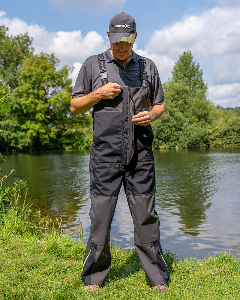 Ofera un confort termic excelent chiar si la temperaturi nefavorabile si o libertate totala de miscare (chiar si in timp ce stati asezat pe scaun) in timpul partidelor de pescuit. Pantalonii au panouri ranforsate in zona genunchilor si a sezutului, pentru o rezistenta sporita la uzura si murdarie. Materialul respirabil de 3000g/m² permite eliminarea a 3kg de vapori de umezeala printr-un metru patrat de tesatura intr-un interval de 24 de ore. Aceasta inseamna ca, pe parcursul zilei, ramaneti incredibil de racoros si uscat in interiorul pantalonilor, deoarece caldura soarelui sau transpiratia cauzata de la efort atunci vor fi eliberate prin tesatura, fara a compromite avantajele sale impermeabile. Pantalonii dispun de doua buzunare impermeabile, situate in zonele laterale, pentru protectia mainilor impotriva frigului. Inchiderea acestora se face cu fermoare YKK impermeabile. Talia partial elasticata, cusaturile complet sudate, curelele reglabile pentru fixarea pe glezne, bretelele elastice reglabile pentru umeri, cataramele din plastic se inchid etans, completeaza lista dotarilor care asigura performante ridicate si functionalitate ireprosabila in conditii dificile. Se comercializeaza in diferite variante de marime: S, M, L, XL, XXL, XXXL si XXXXL.