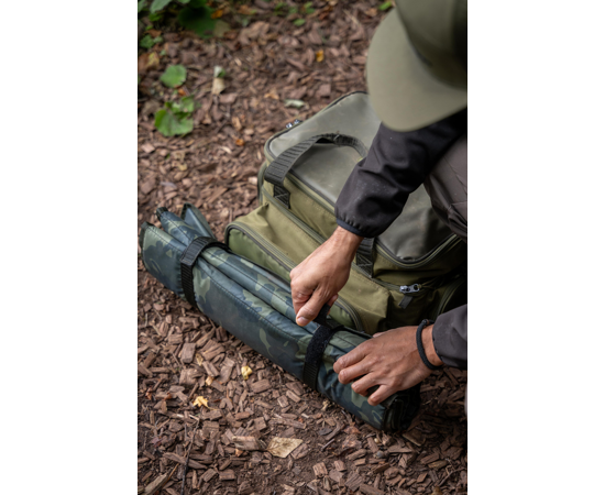 - Bucle D pentru atașare: Include bucle tip D care permit prinderea de gentile Korum în timpul transportului.