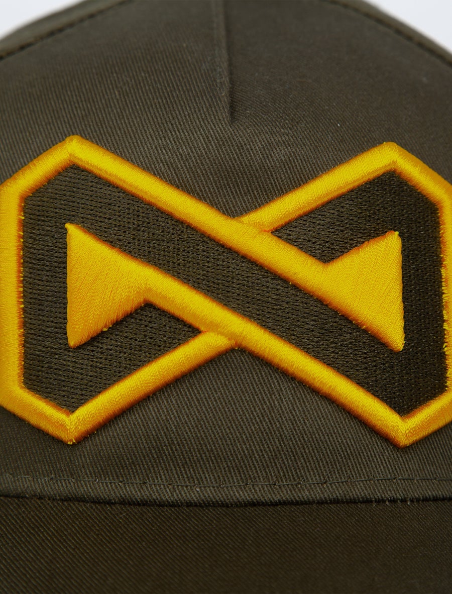 Șapcă de pescuit clasică, verde de la Navitas Outdoors, finisată cu broderie 3D galbenă cu logo „Nfinity” de înaltă calitate.